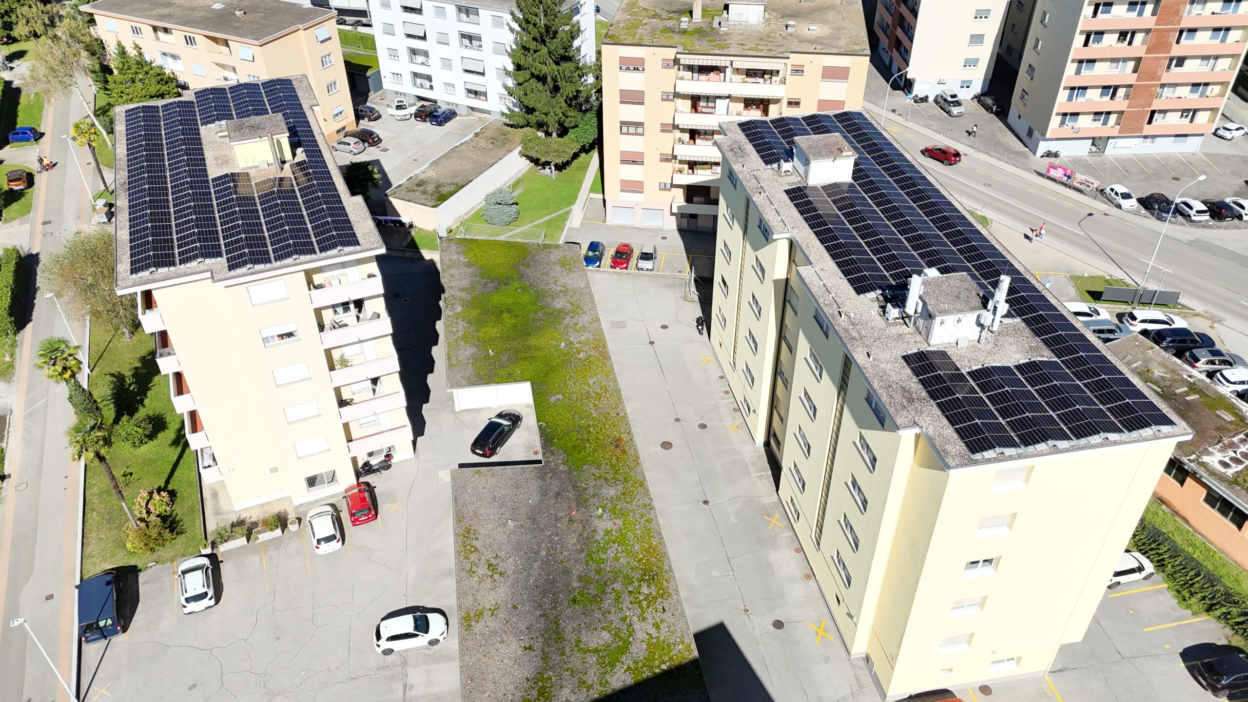 Gli impianti, con una potenza rispettivamente di 62,23 kWp (immobile 11), 34,2 kWp (immobile 13) e 29,46 kWp (immobile 13A), sono stati configurati come RCP. Questa soluzione consente di ottimizzare l’autoconsumo dell’energia prodotta, distribuendola direttamente agli inquilini.
